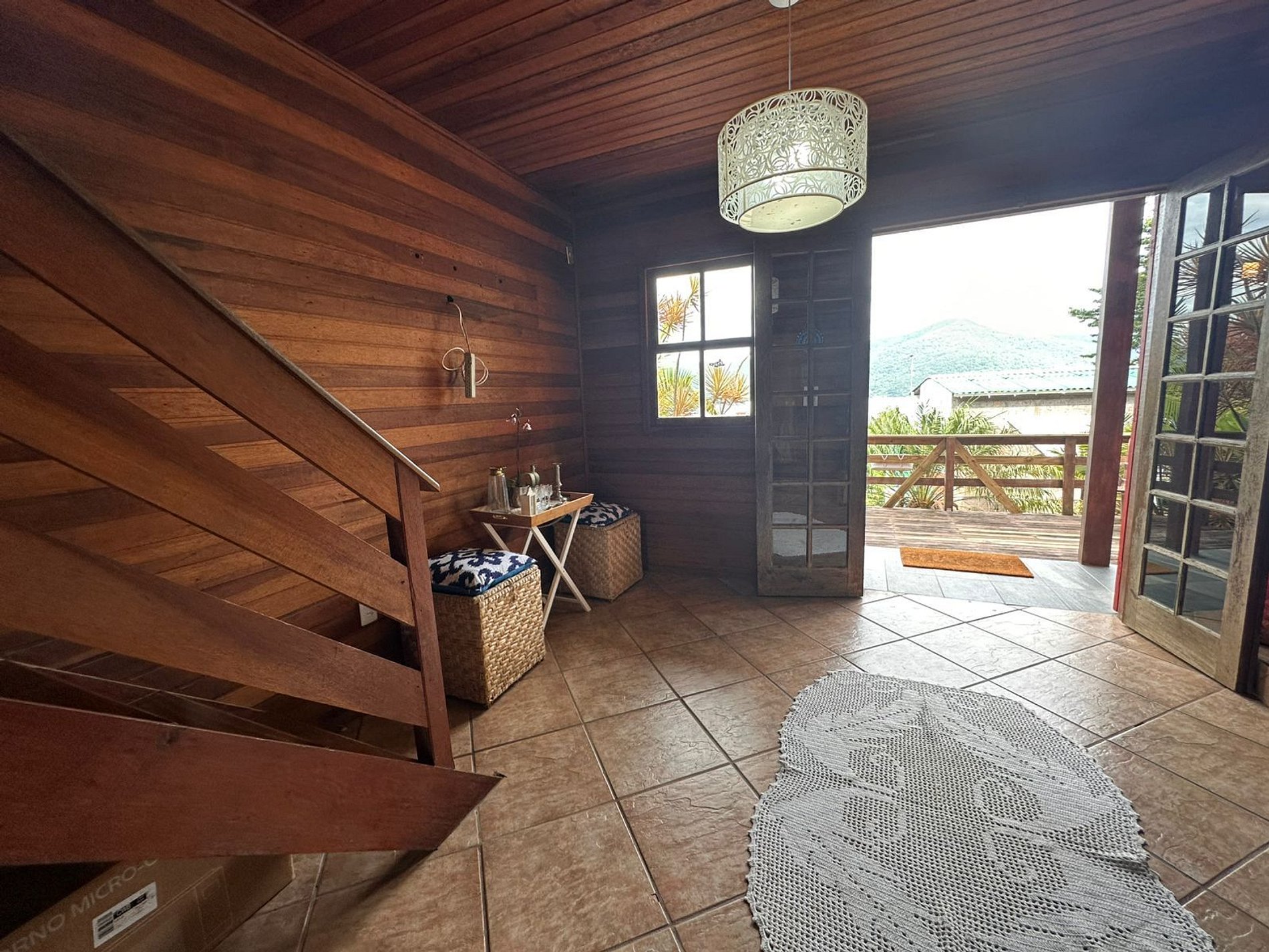 Linda casa pre-fabricada em terreno de 500 m² com piscina e vista para a Lagoa da Conceição. 2 quartos com ar condicionado, 3 banheiros, espaço comúm com área gourmet com churrasqueira, a 800 metros da praia Mole e 2km da praia da Barra da Lagoa