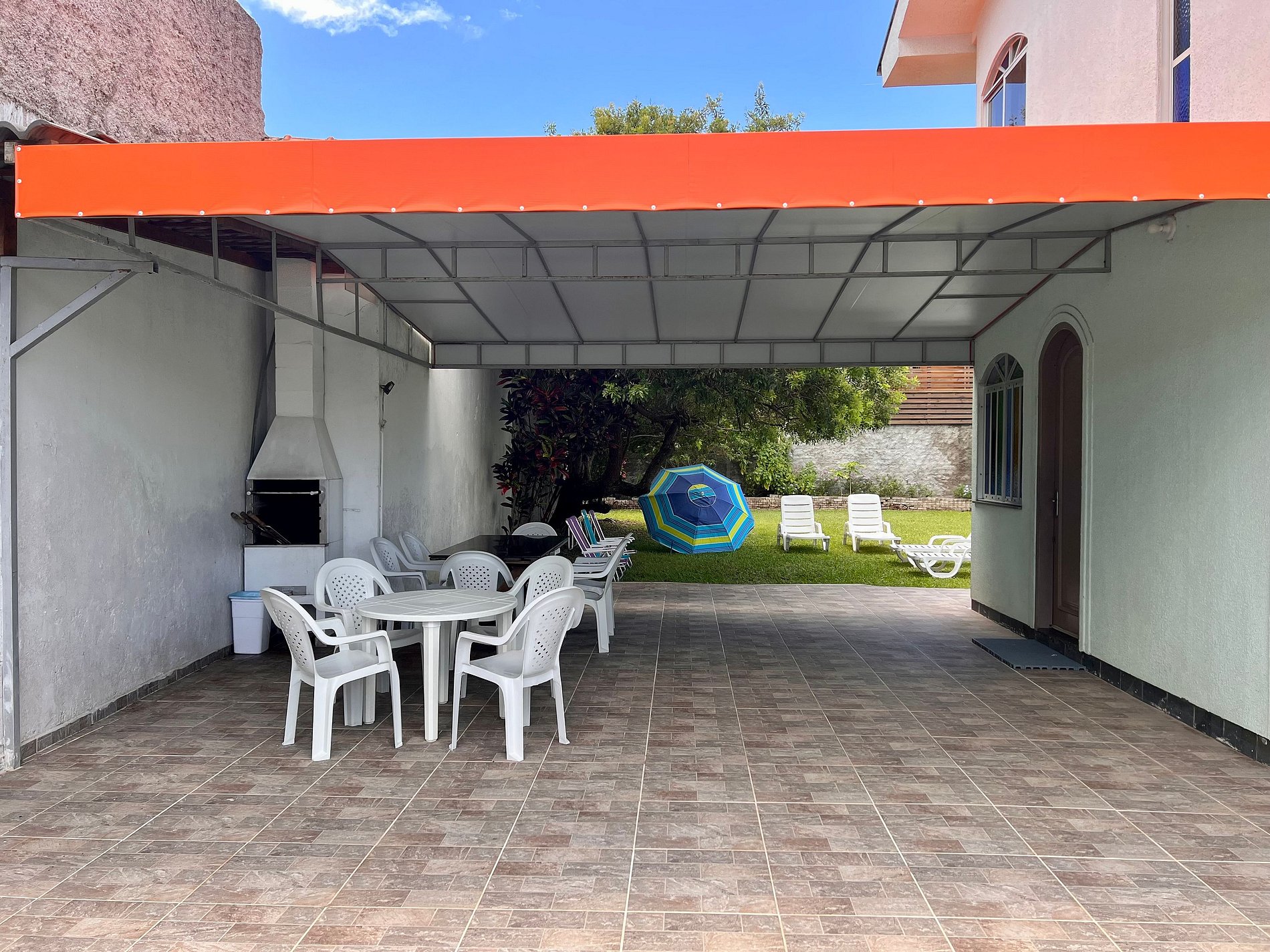 Linda casa em rua tranquila, com terreno amplo, com sombra e gramado, a 90m da praia da Barra da Lagoa. Localizado na Rua Neivo Paulo Rogelin 47, Florianópolis.